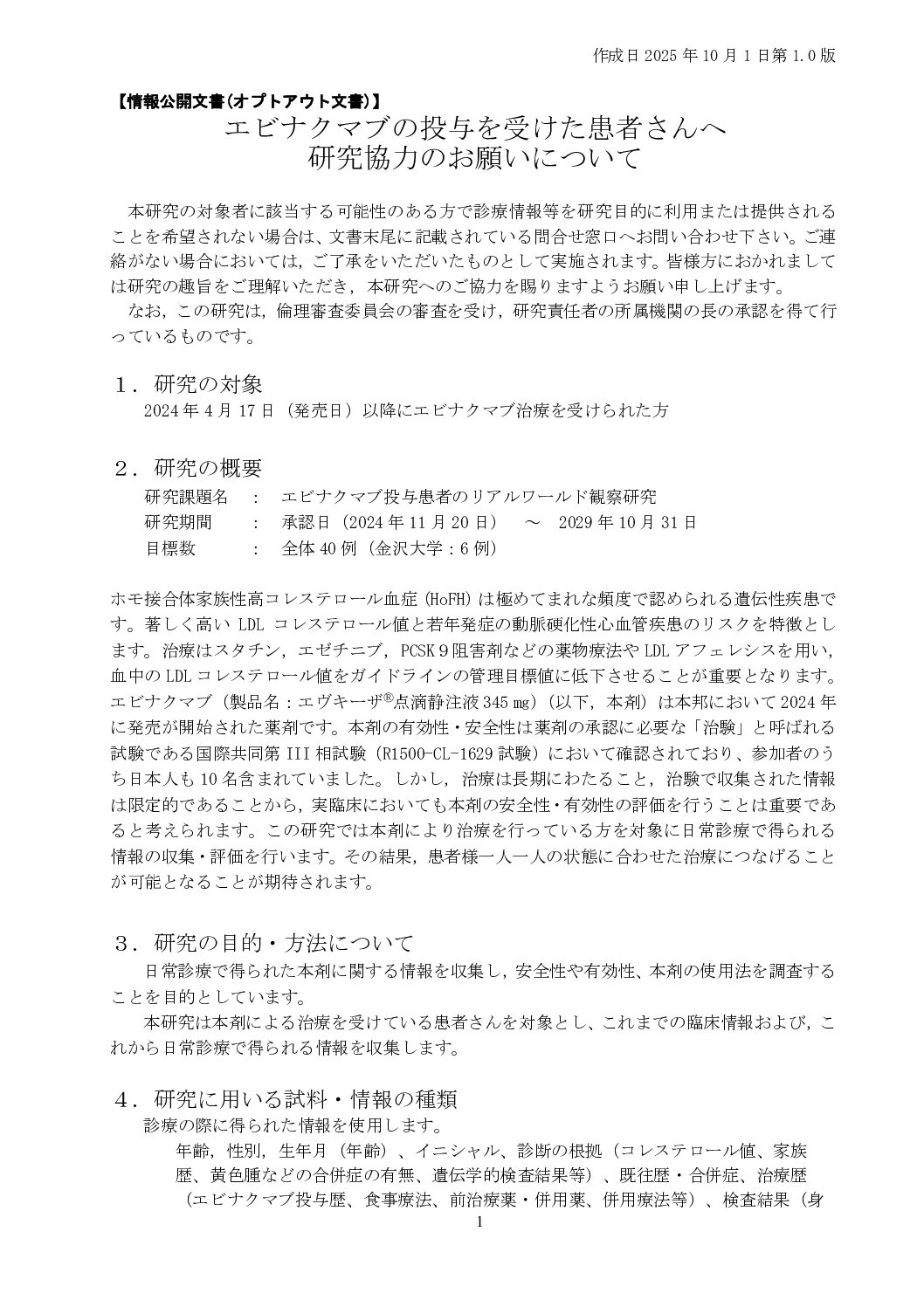 エビナクマブ投与患者のリアルワールド観察研究(Japan Evinacumab Registry Study)